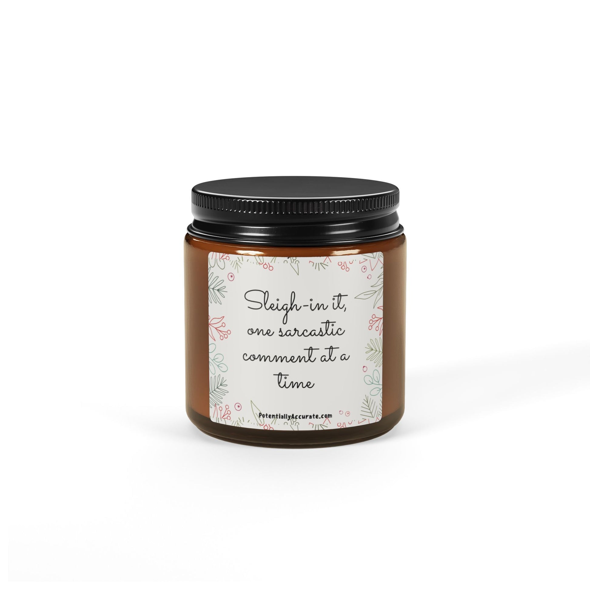 "Sleigh-in it one sarcastic comment at a time" Christmas Candle. (Multi-Size, Amber Jar) Scented, Soy, Humor, Sarcastic, Funny, Holiday, Gift.